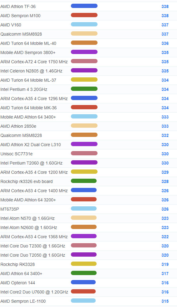 | 3125 | Intel Atom C3338 @ 1.50GHz | 915 |