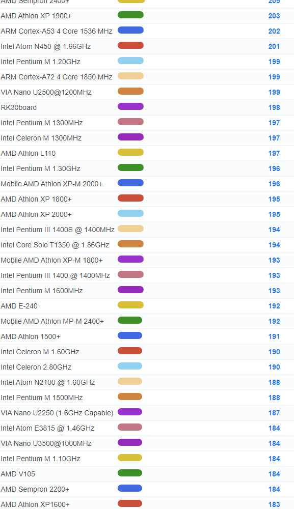 | 4010 | Intel Atom N435 @ 1.33GHz | 153 |