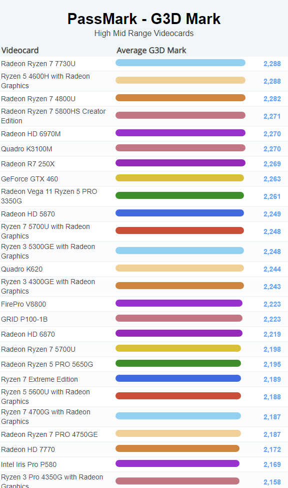 | 632 | Radeon Ryzen 5 PRO 5650G | 2,195 |