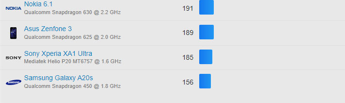 | 394 | Nokia 6.1 | Qualcomm Snapdragon 630 @ 2.2 GHz | 191 |