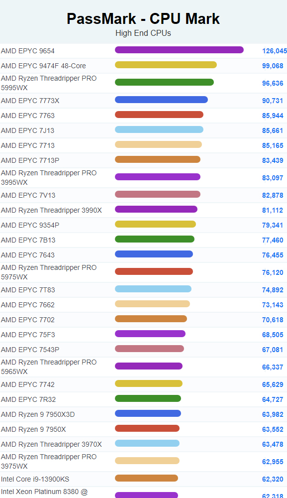 | 3 | AMD Ryzen Threadripper PRO 5995WX | 96,636 |