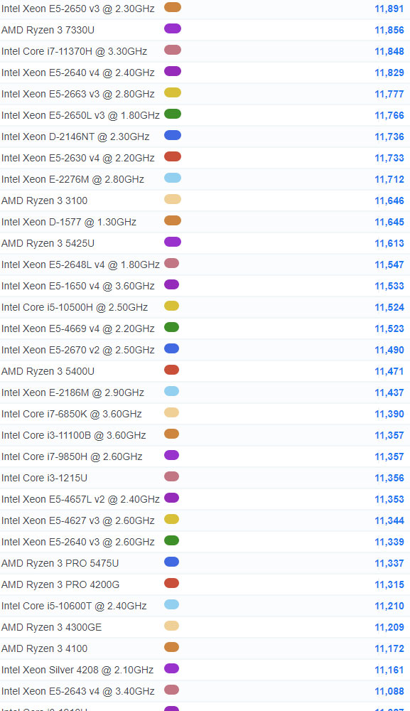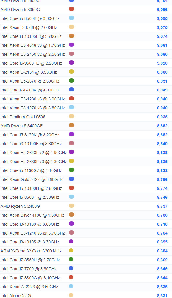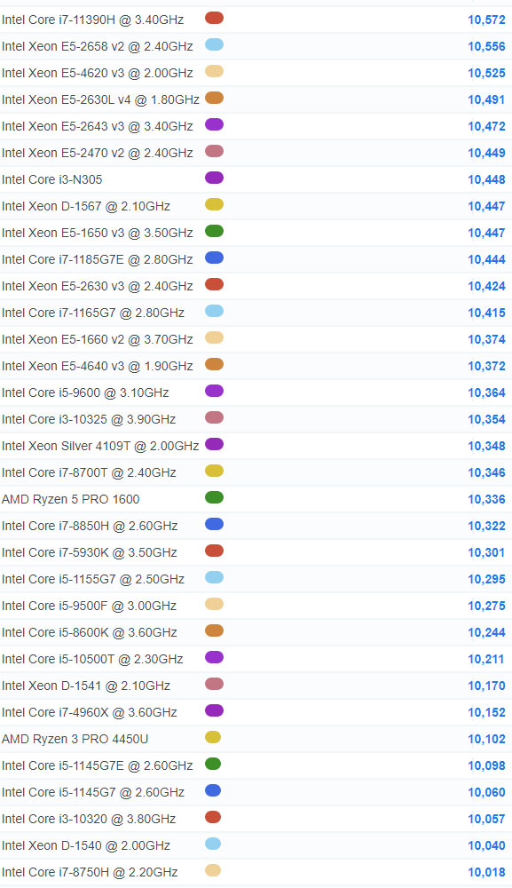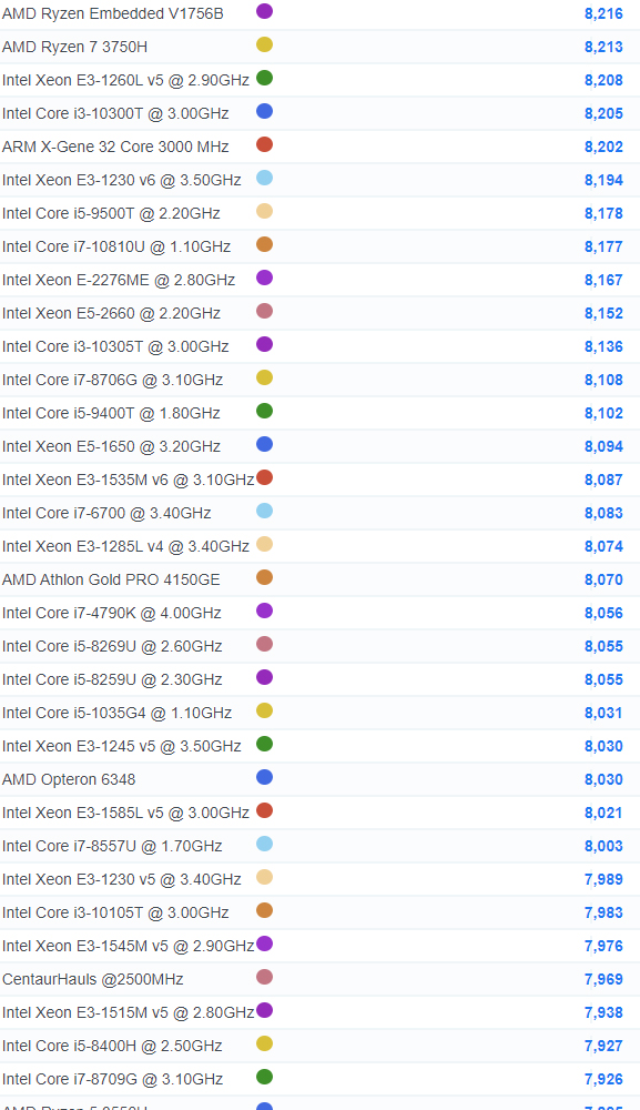| 978 | Intel Core i3-10105T @ 3.00GHz | 7,983 |