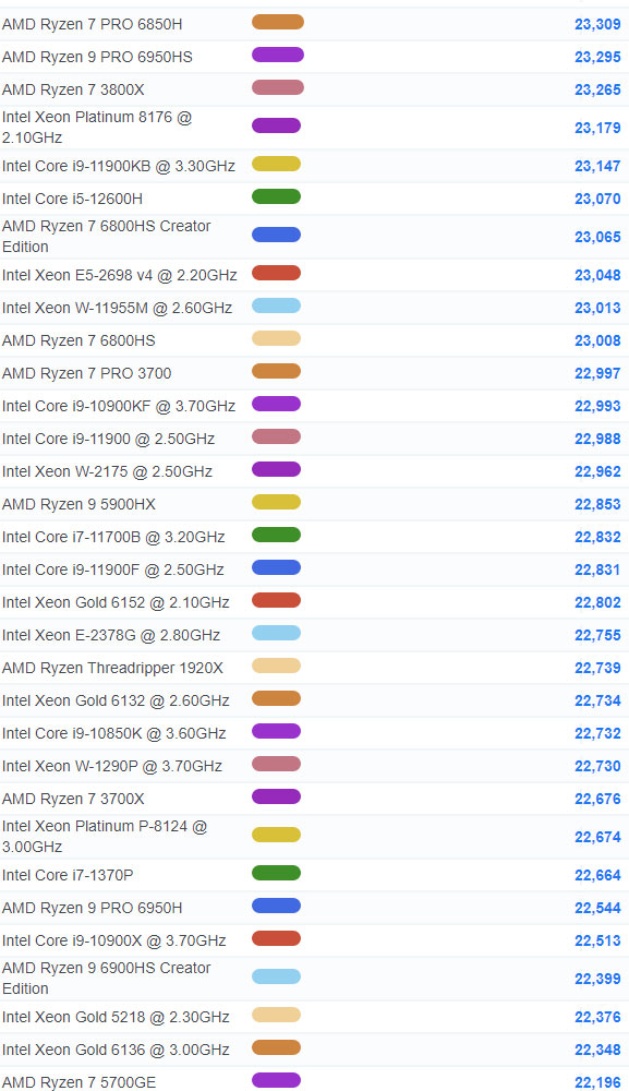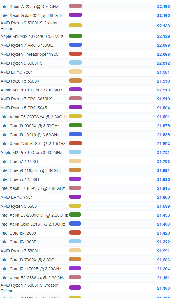 | 21 | AMD Ryzen Threadripper PRO 5965WX | 66,337 |