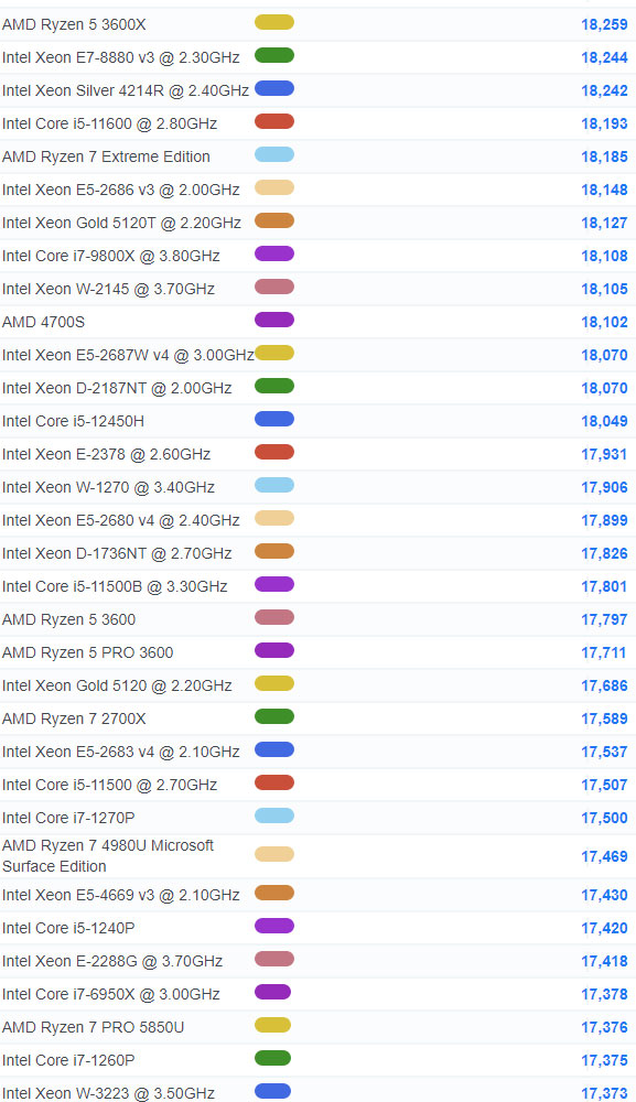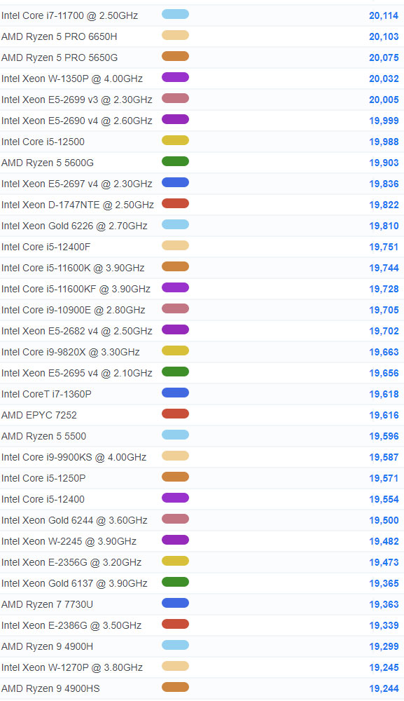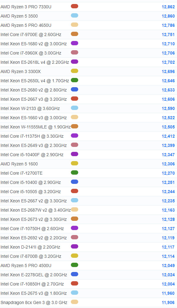 | 962 | Intel Core i7-8706G @ 3.10GHz | 8,108 |