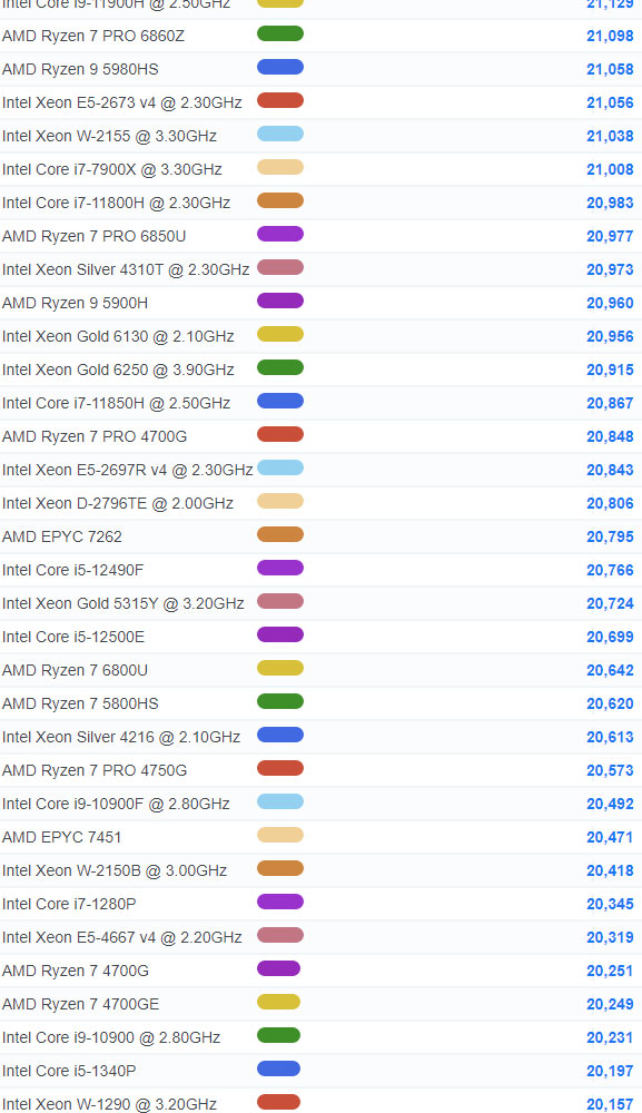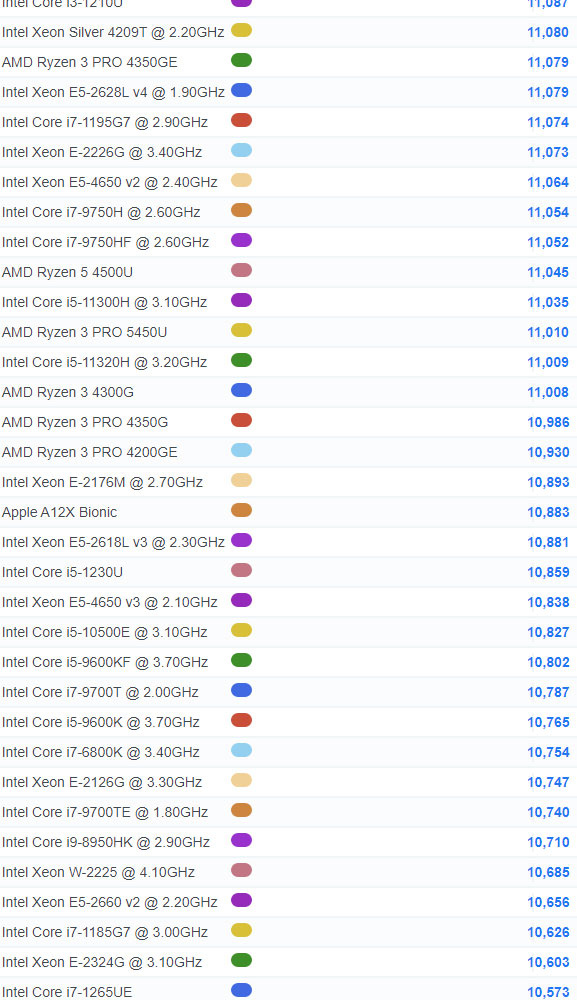 | 983 | Intel Core i7-8709G @ 3.10GHz | 7,926 |