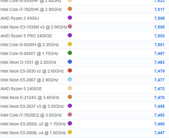 | 1017 | Intel Core i5-9300HF @ 2.40GHz | 7,523 |