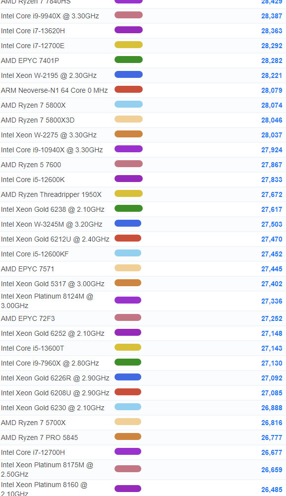 | 23 | AMD EPYC 7R32 | 64,727 |