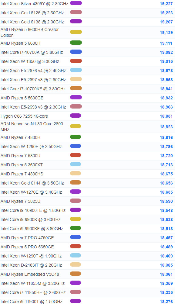 | 37 | Intel Xeon W-3365 @ 2.70GHz | 59,038 |