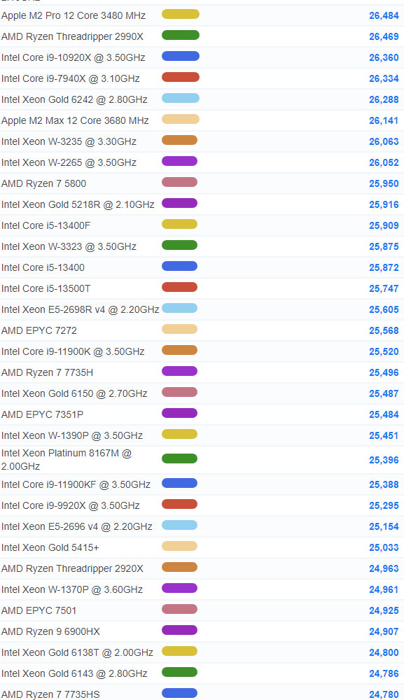 | 26 | AMD Ryzen Threadripper 3970X | 63,478 |