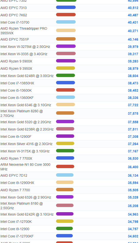 | 38 | Intel Xeon W-3375 @ 2.50GHz | 57,896 |