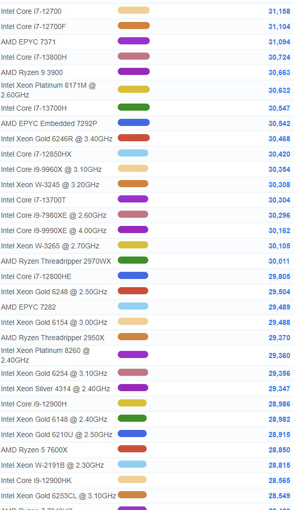 | 29 | Intel Xeon Platinum 8380 @ 2.30GHz | 62,318 |