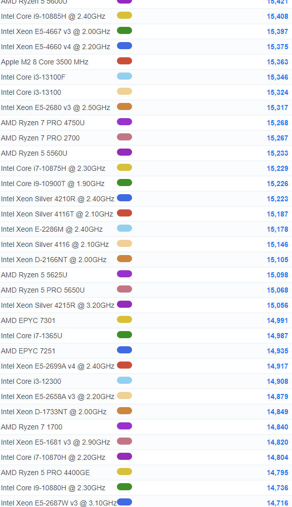 | 970 | Intel Core i5-8269U @ 2.60GHz | 8,055 |