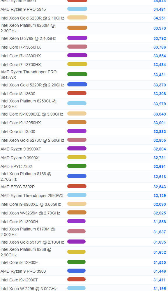 | 27 | AMD Ryzen Threadripper PRO 3975WX | 62,955 |