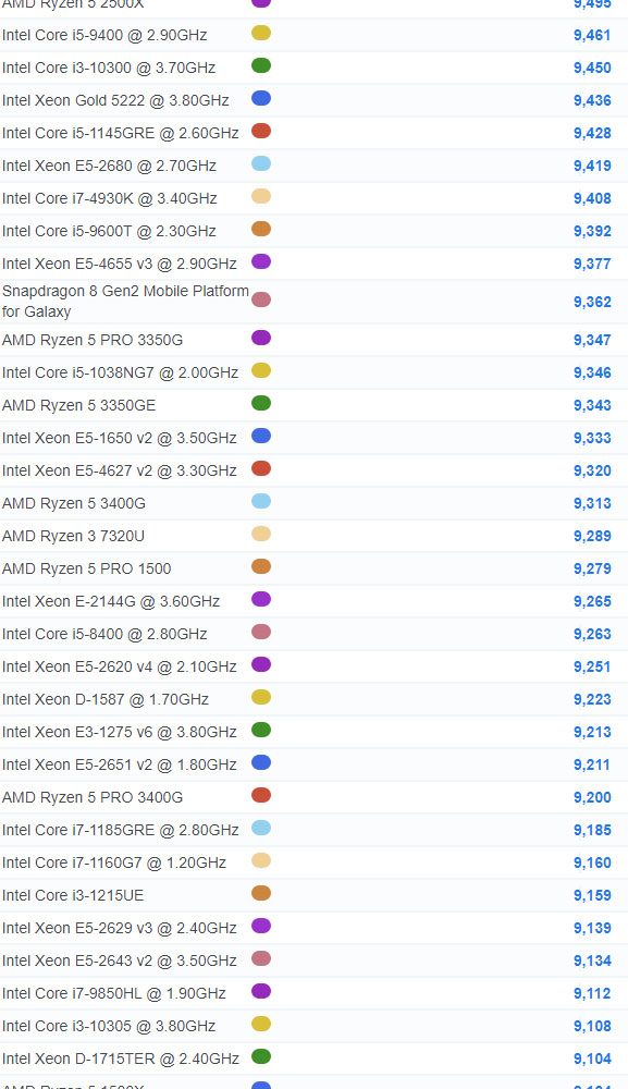 | 957 | Intel Core i5-9500T @ 2.20GHz | 8,178 |
