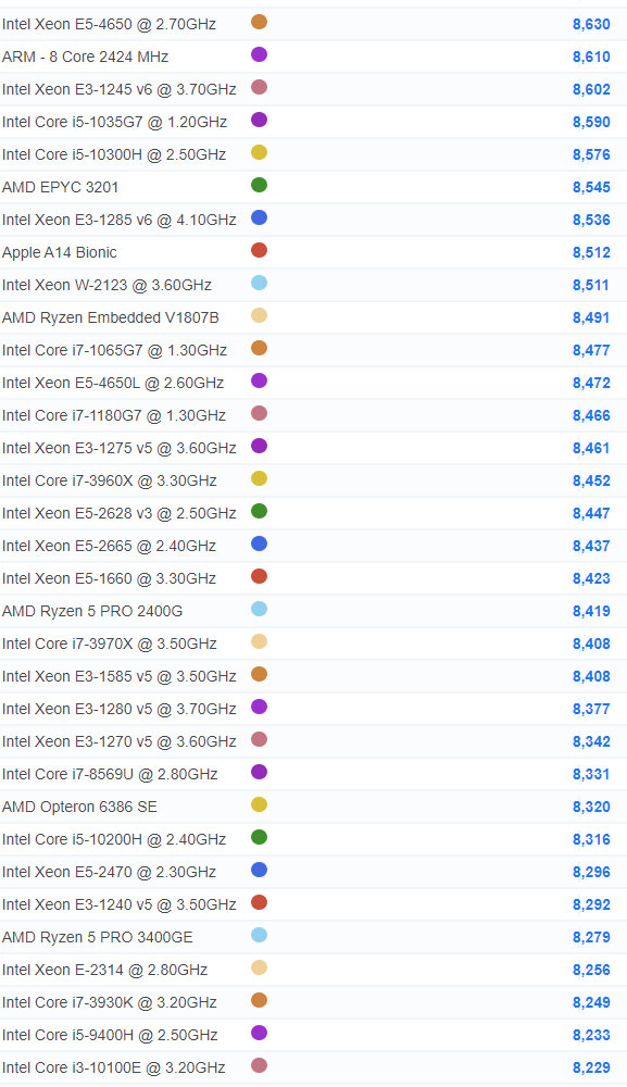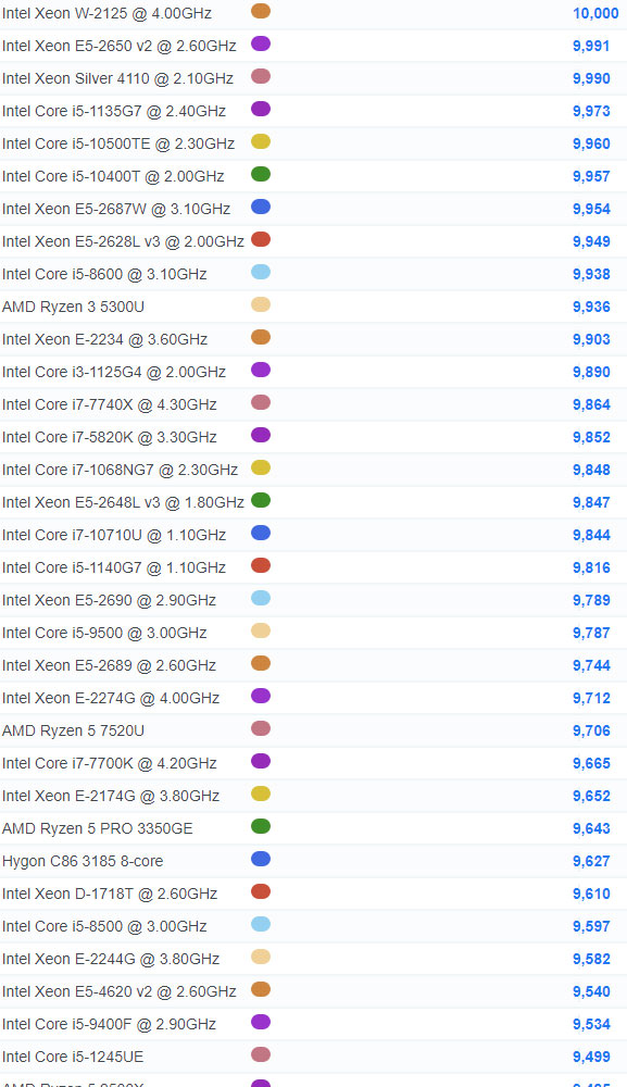 | 959 | Intel Xeon E-2276ME @ 2.80GHz | 8,167 |
