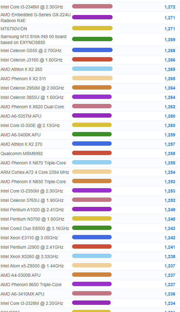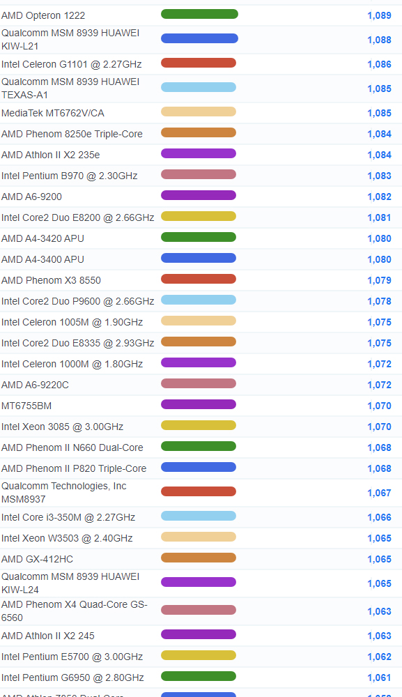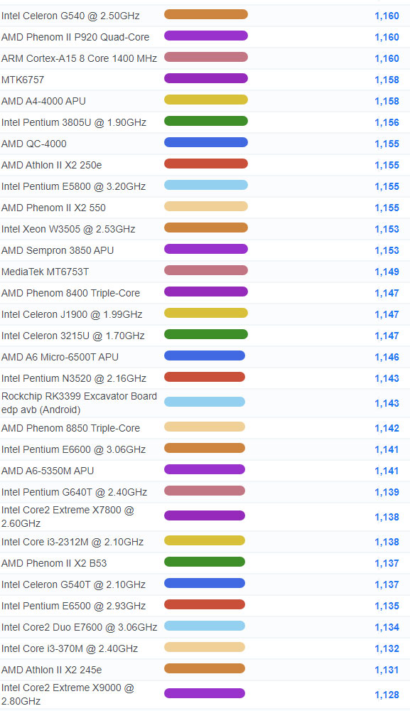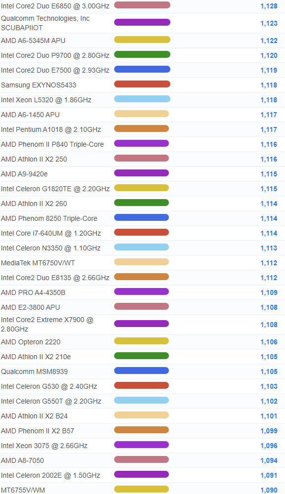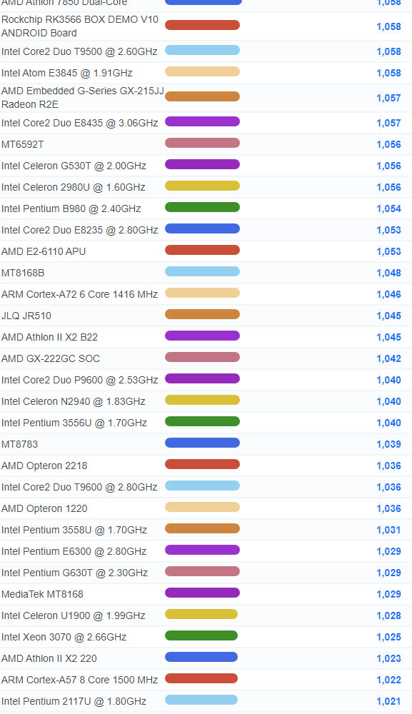 | 3062 | Intel Celeron U1900 @ 1.99GHz | 1,028 |