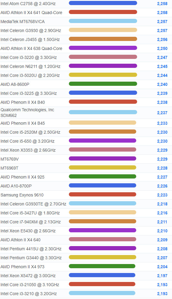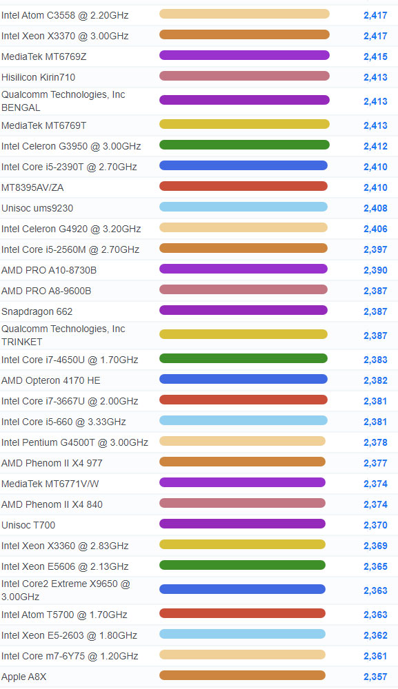 | 2127 | Intel Atom C3558 @ 2.20GHz | 2,417 |