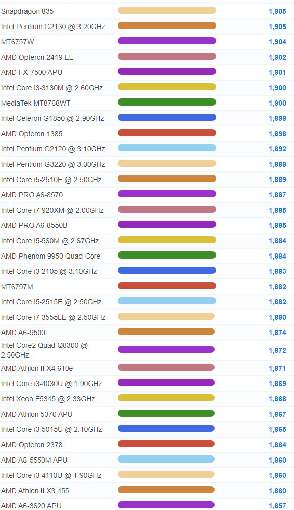 | 2073 | Intel Core i7-8500Y @ 1.50GHz | 2,524 |