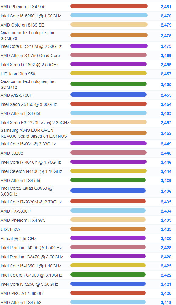 | 2126 | AMD Athlon II X4 553 | 2,418 |