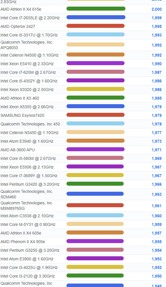 | 2106 | AMD Athlon II X4 650 | 2,453 |