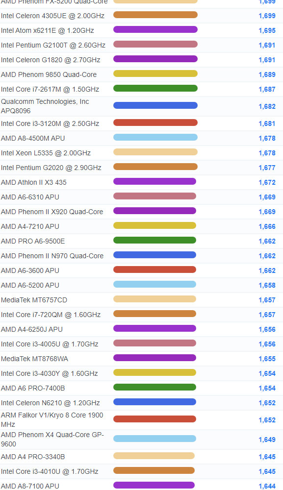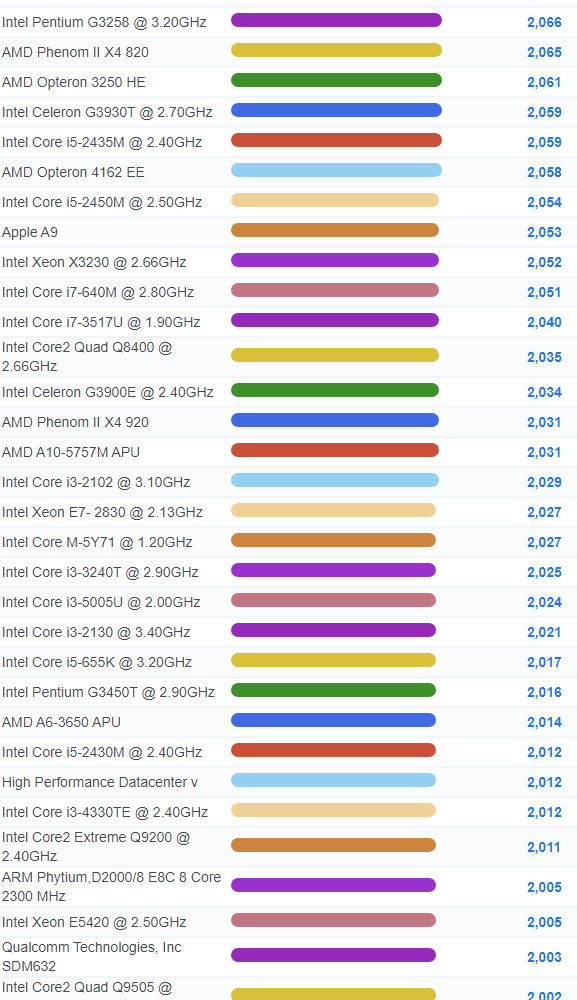 | 2096 | Intel Core i5-5250U @ 1.60GHz | 2,479 |