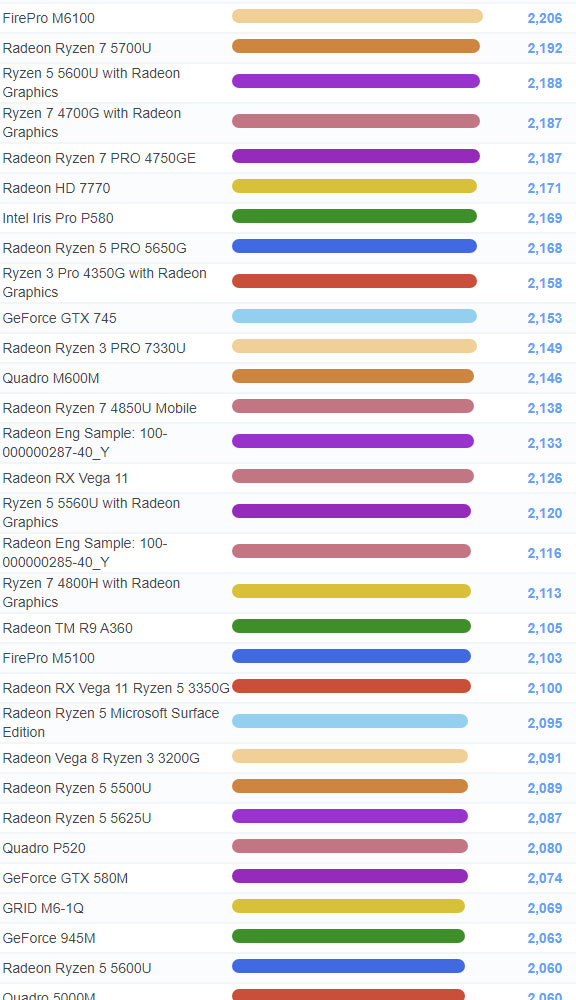 | 673 | Radeon Ryzen 5 5600U | 2,060 |