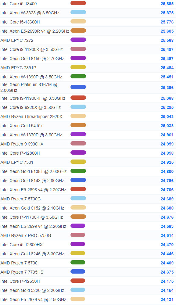 | 27 | Intel Xeon w7-2495X | 63,904 |