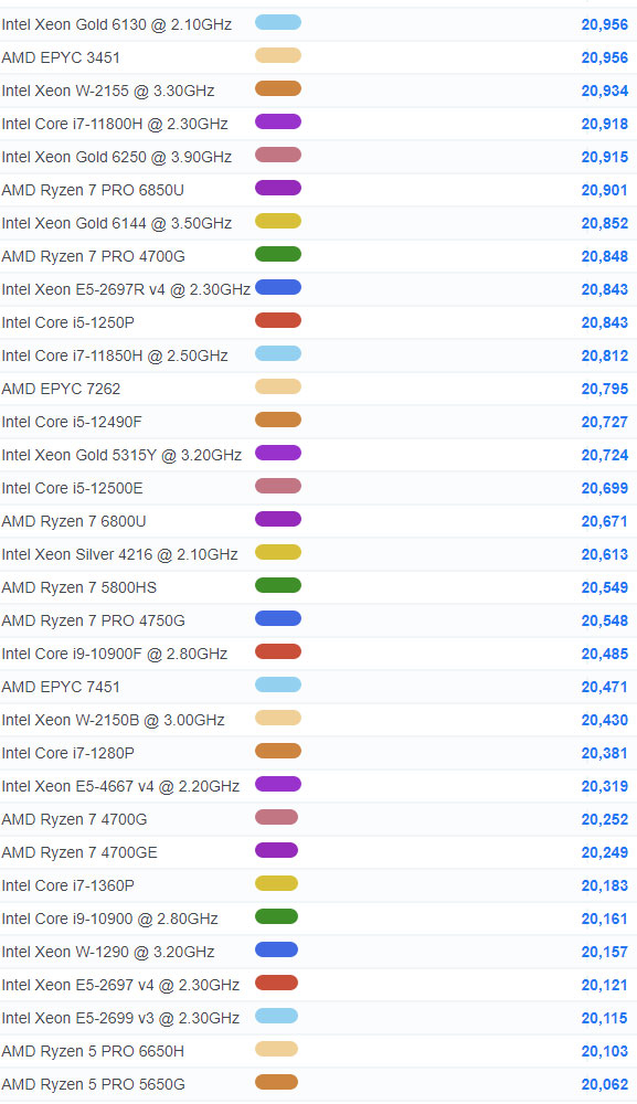 | 40 | Intel Xeon W-3375 @ 2.50GHz | 59,069 |