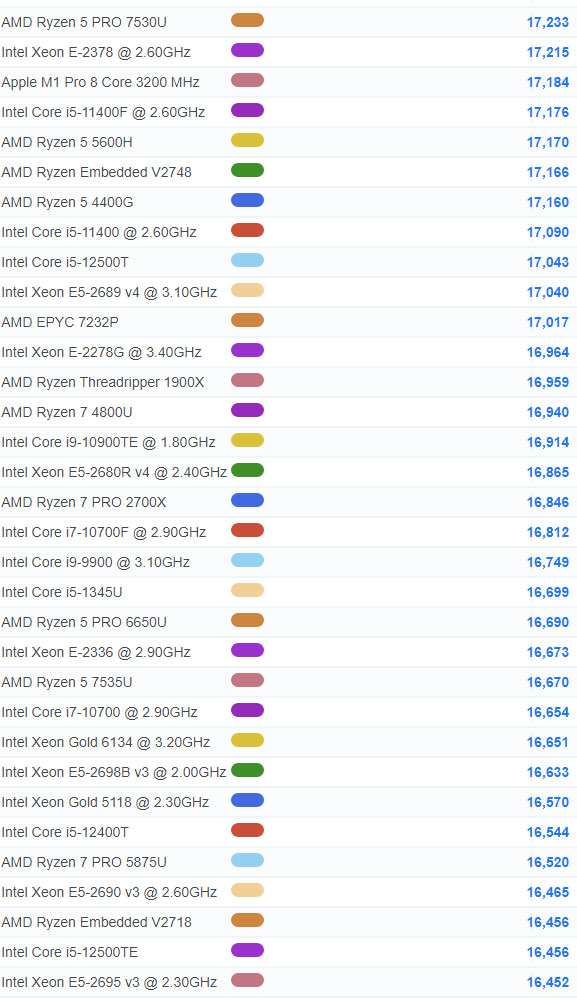 | 1036 | Intel Core i5-8279U @ 2.40GHz | 7,764 |