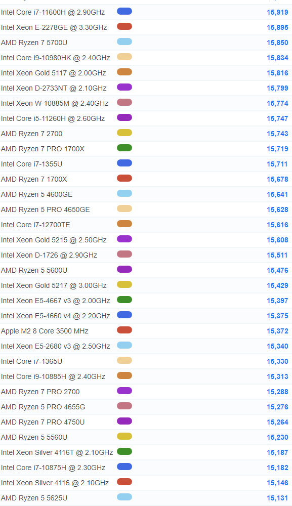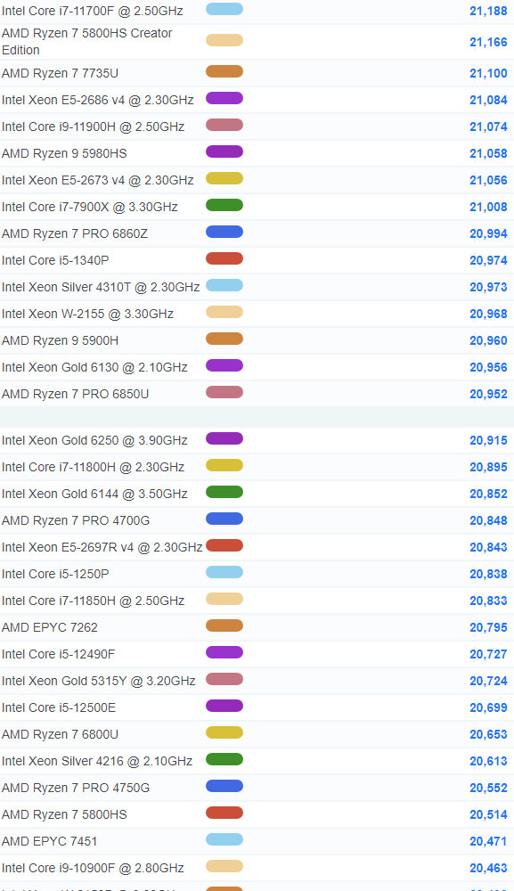 | 1042 | Intel Core i7-8709G @ 3.10GHz | 7,926 |