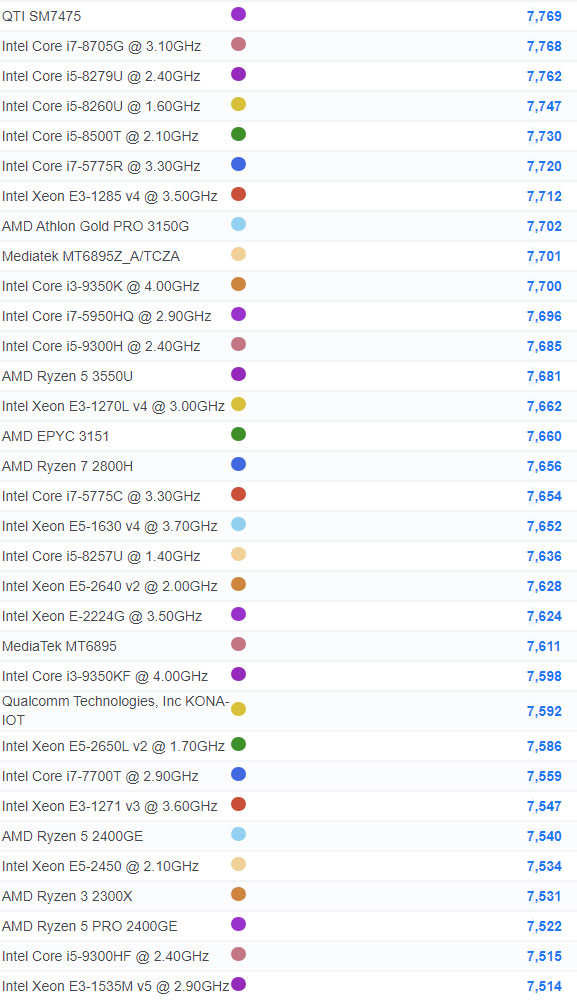 | 1051 | Intel Core i5-8279U @ 2.40GHz | 7,762 |