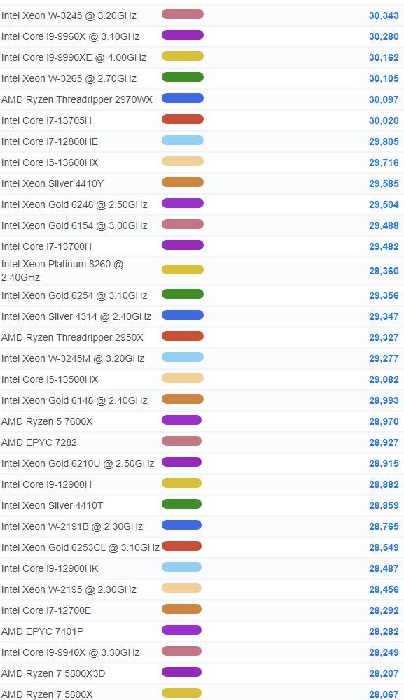 | 31 | Intel Xeon w7-2495X | 63,441 |