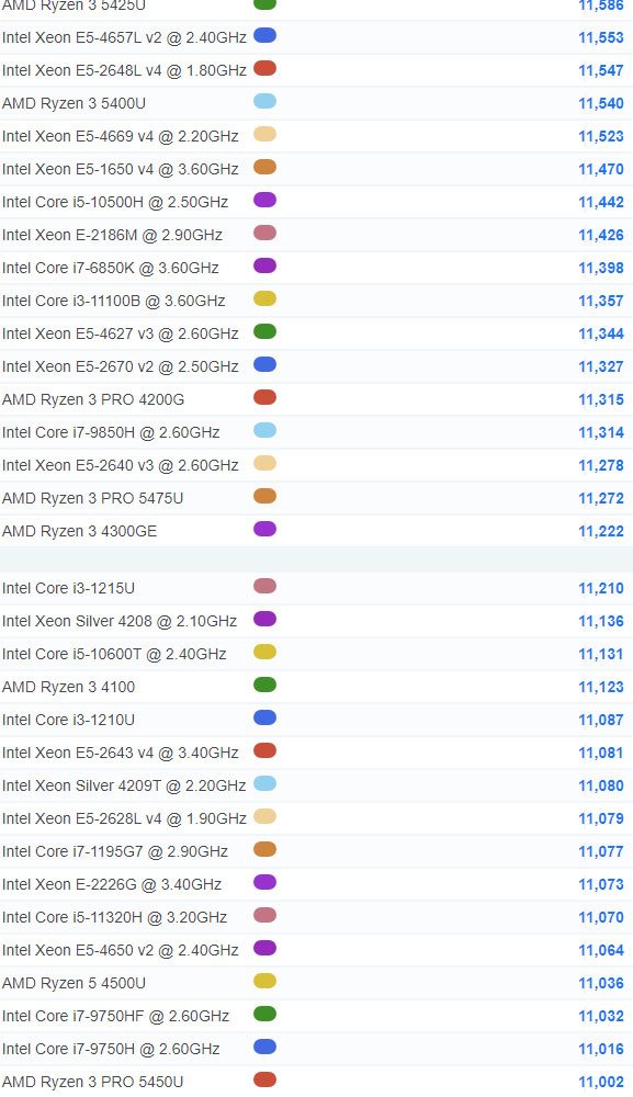 | 1039 | Intel Core i3-10105T @ 3.00GHz | 7,986 |