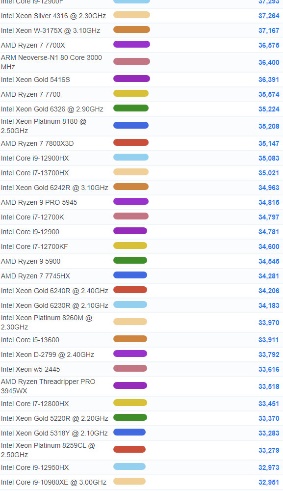 | 34 | AMD Ryzen Threadripper PRO 3975WX | 63,083 |