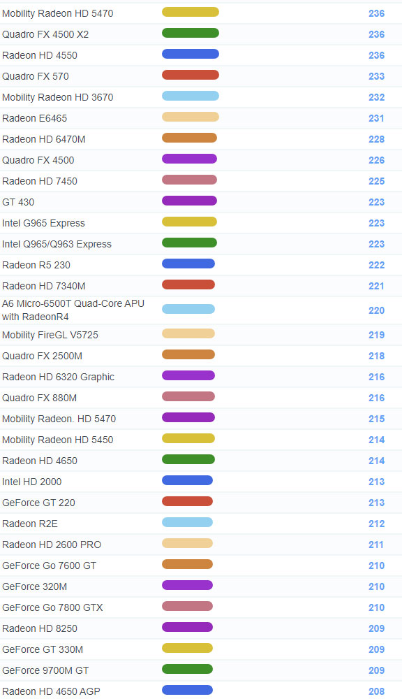 | 1789 | Radeon HD 4550 | 236 |