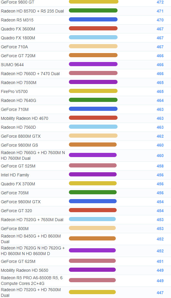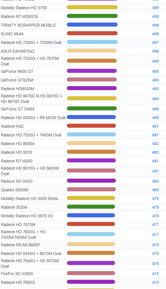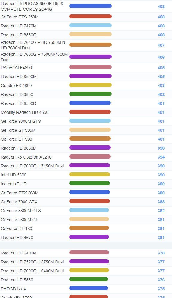 | 1274 | Radeon HD 8650G + R5 M200 Dual | 723 |