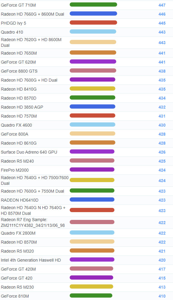 | 1786 | Radeon HD 6410D | 238 |
