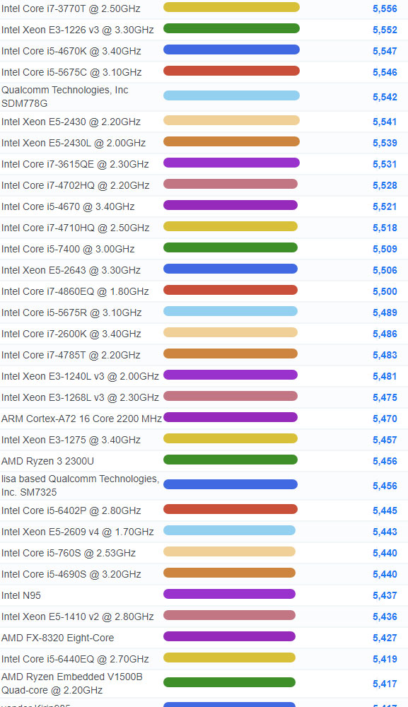 | 1093 | Intel Core i5-8400T @ 1.70GHz | 7,488 |