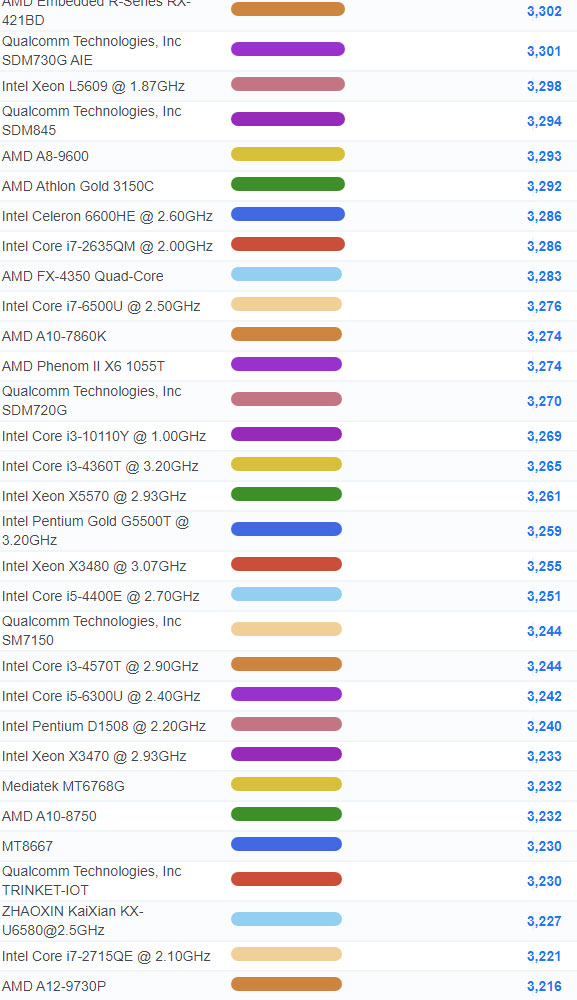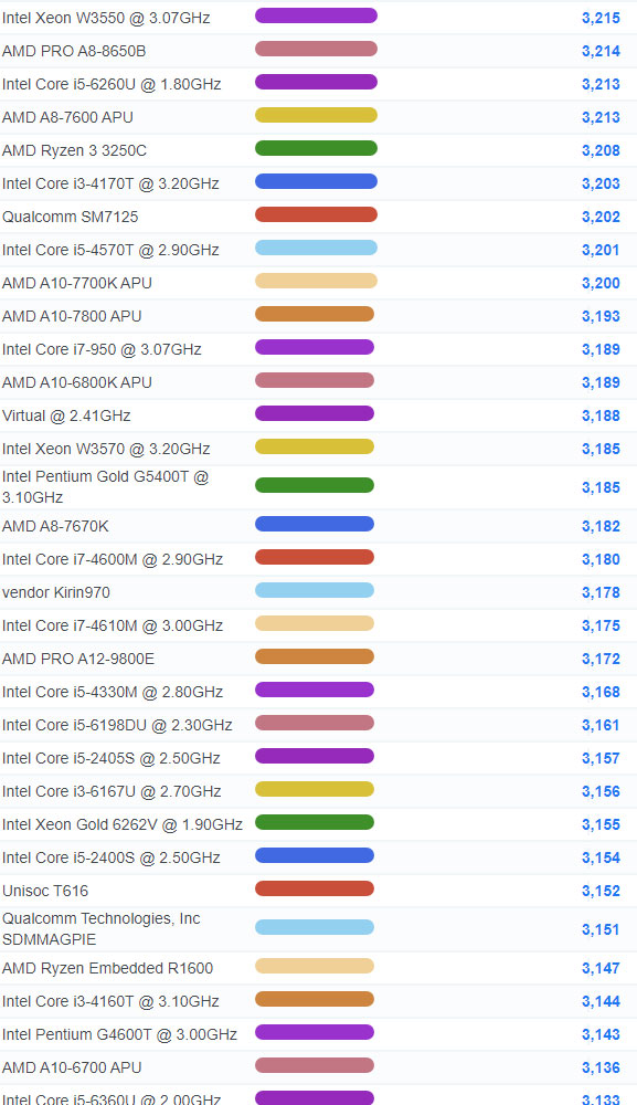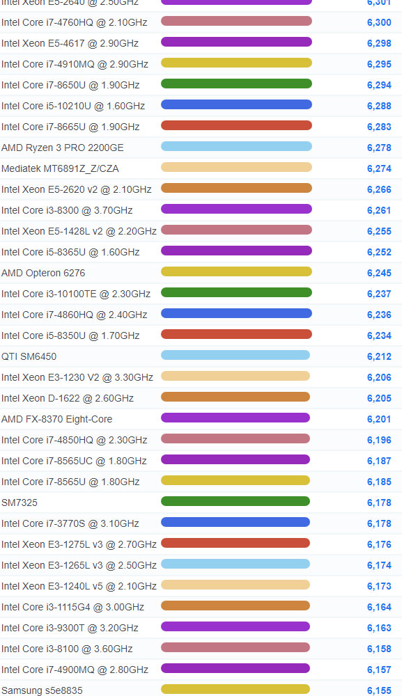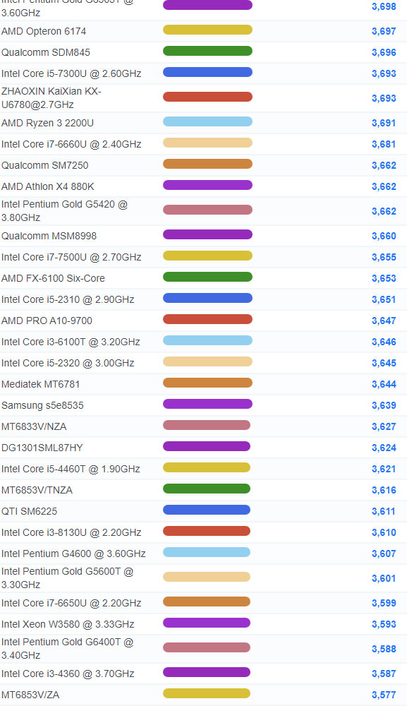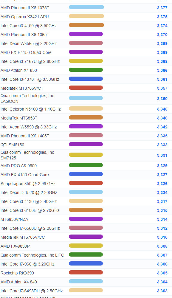 | 1117 | Intel Core i3-10100T @ 3.00GHz | 7,343 |