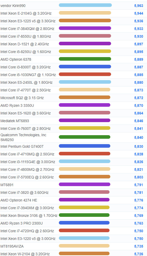 | 2095 | HiSilicon Kirin 970 | 2,908 |