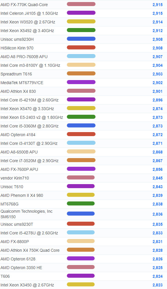 | 2148 | Intel Core 860 @ 2.80GHz | 2,754 |