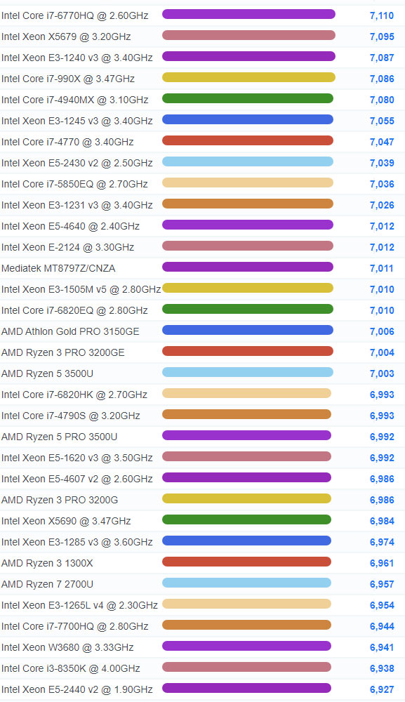 | 1110 | Intel Core i7-7920HQ @ 3.10GHz | 7,381 |