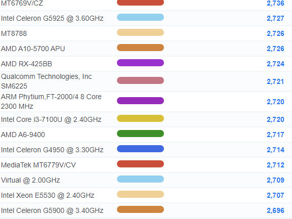 | 2156 | Intel Celeron G5925 @ 3.60GHz | 2,727 |
