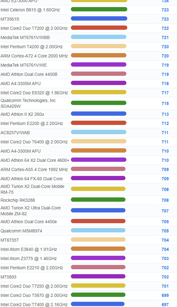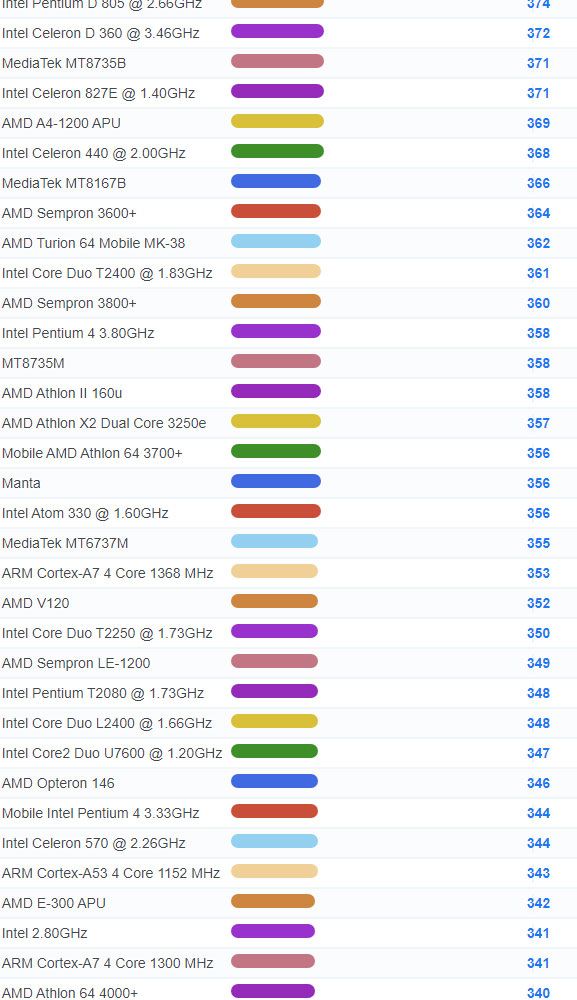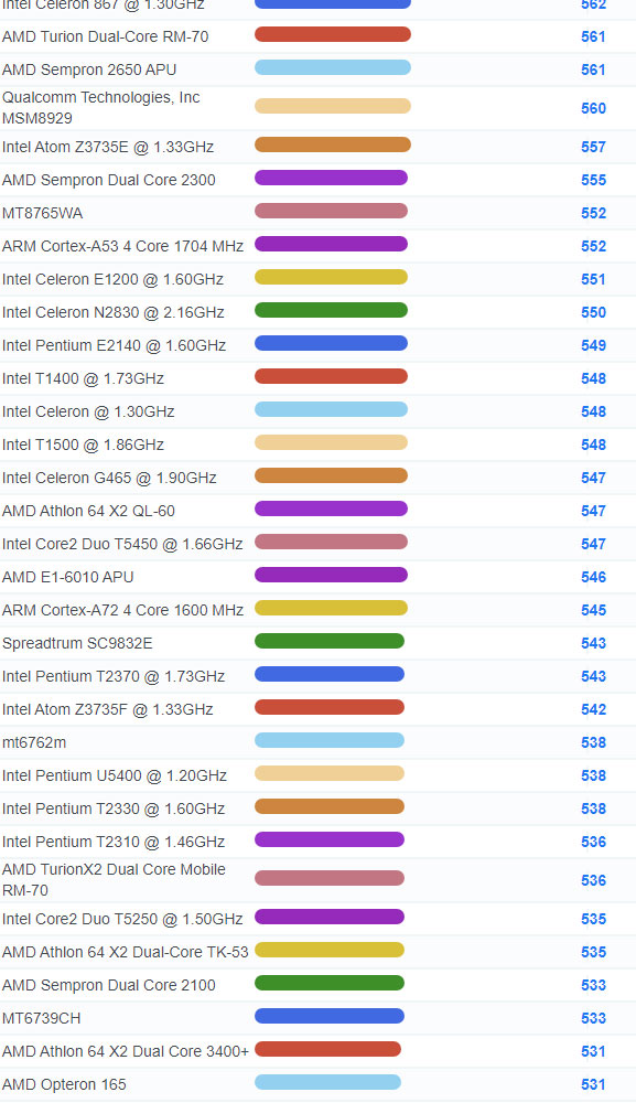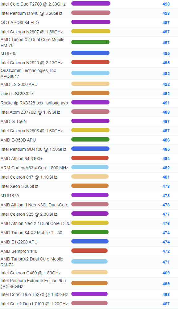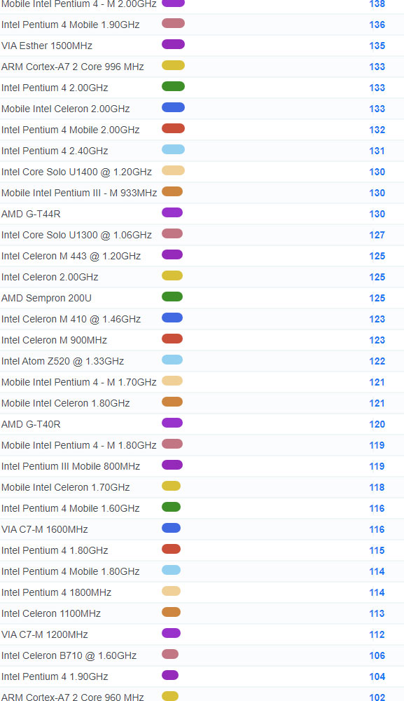 | 4298 | Intel Core Solo U1300 @ 1.06GHz | 127 |