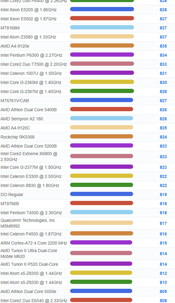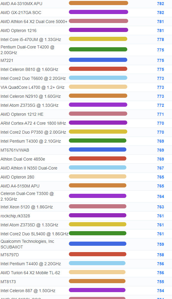| 3293 | Intel Celeron 2981U @ 1.60GHz | 991 |