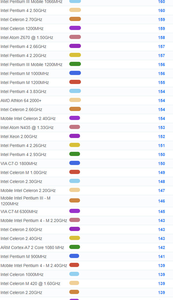 | 4273 | Intel Celeron M 1.00GHz | 149 |