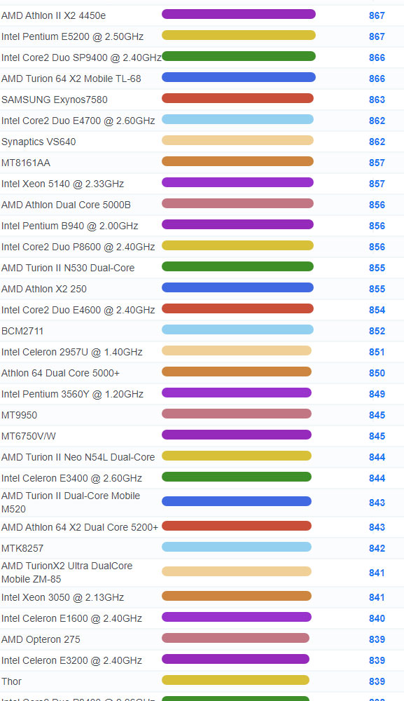 | 3309 | Intel Core2 Duo T7800 @ 2.60GHz | 976 |