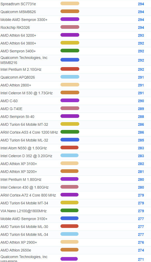 | 4250 | Mobile AMD Sempron 2100+ | 164 |