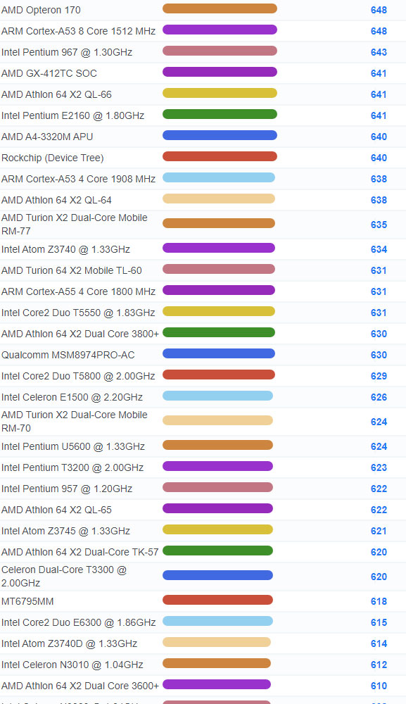 | 3251 | Intel Atom C3338 @ 1.50GHz | 1,028 |