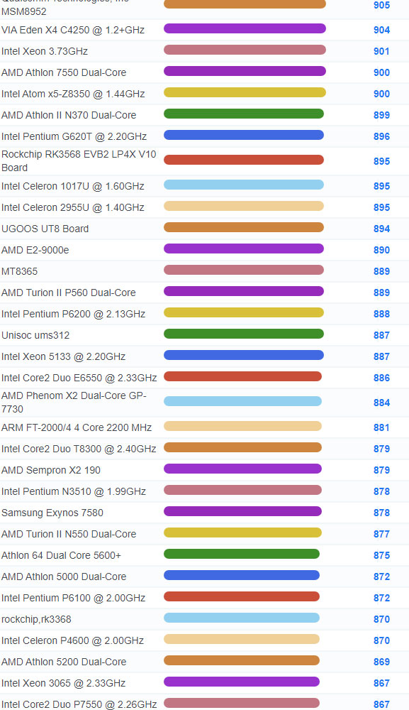 | 3252 | Intel Celeron U1900 @ 1.99GHz | 1,028 |